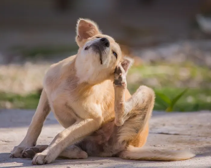 Allergi viser sig typisk som kløe, rødme og betændelsestilstande i huden. Som ejer bør du derfor være opmærksom, hvis din hund eller kat pludseligt udvikler hudproblemer – eller irritation omkring poter eller ører. Rødme i huden og pelstab kan være tegn på allergi, ligesom hunden eller katten kan begynde at bide eller slikke i huden for at lindre kløen.
